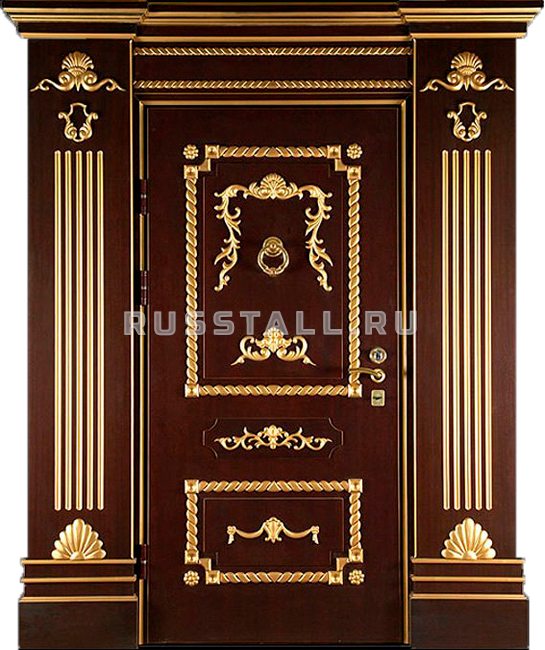 Отделка снаружи: натуральный шпон с багетами, карнизом, капителями